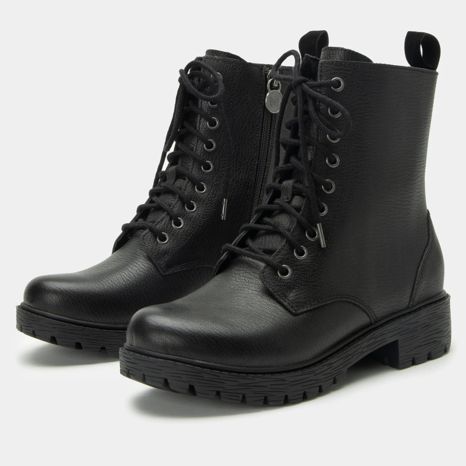 Industrial styling takes a feminine turn in this water-resistant leather lace-up boot that fashionably rises to mid-calf. It incorporates a back tab and inside zipper making it a breeze to slip on and off. Stand securely on a slip-resistant luxe lug outsole.