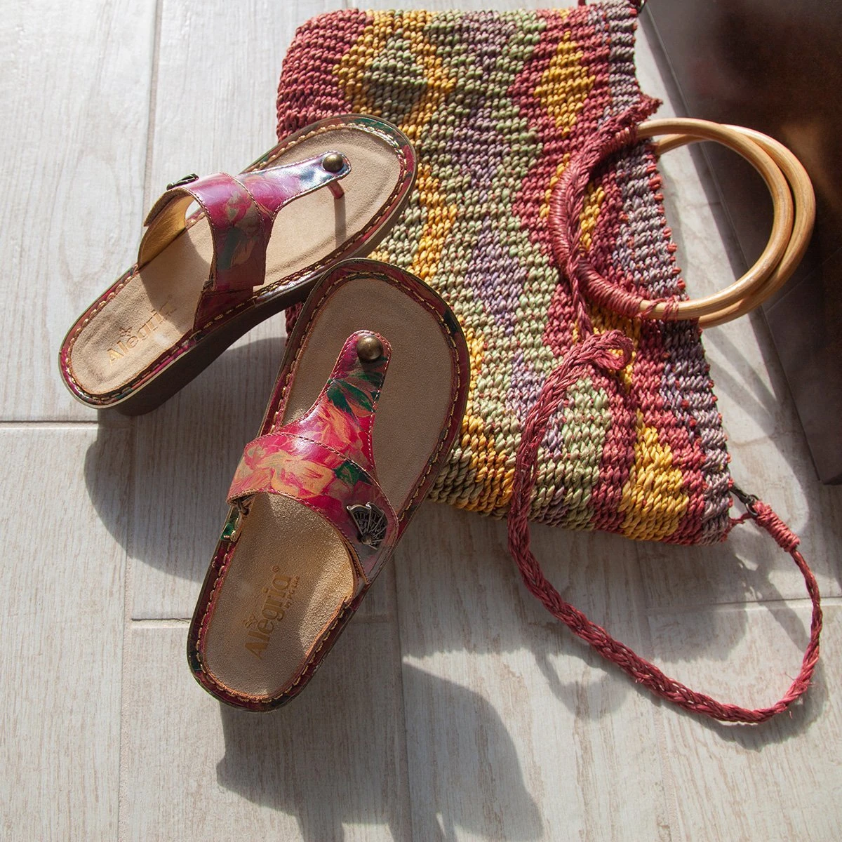 The classic leather flip-flop, a wardrobe must have, is given an artistic update with decorative hardware on an adjustable hook-and-loop close strap. The comfort comes through in a cushioned footbed and slip-resistant classic rocker outsole.
