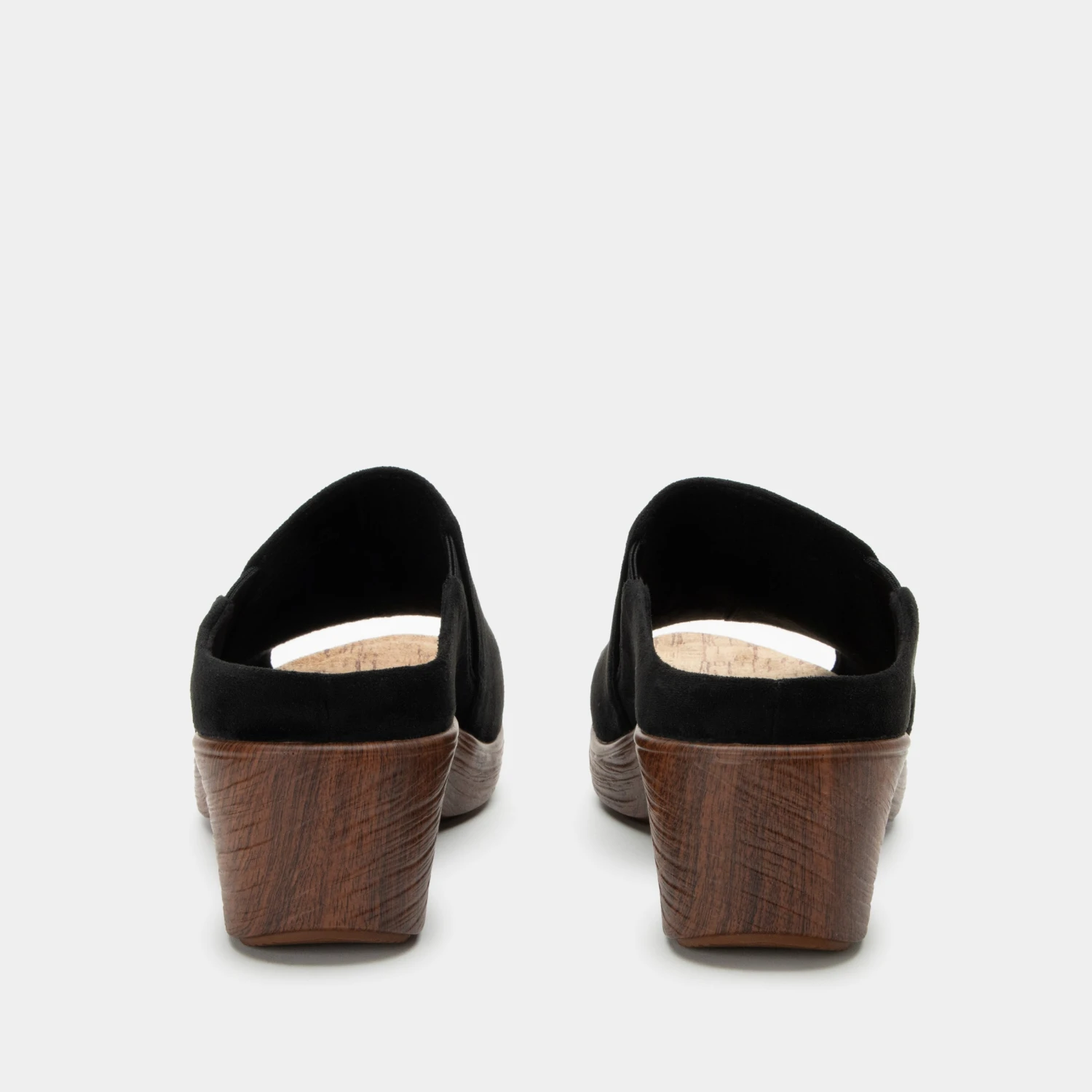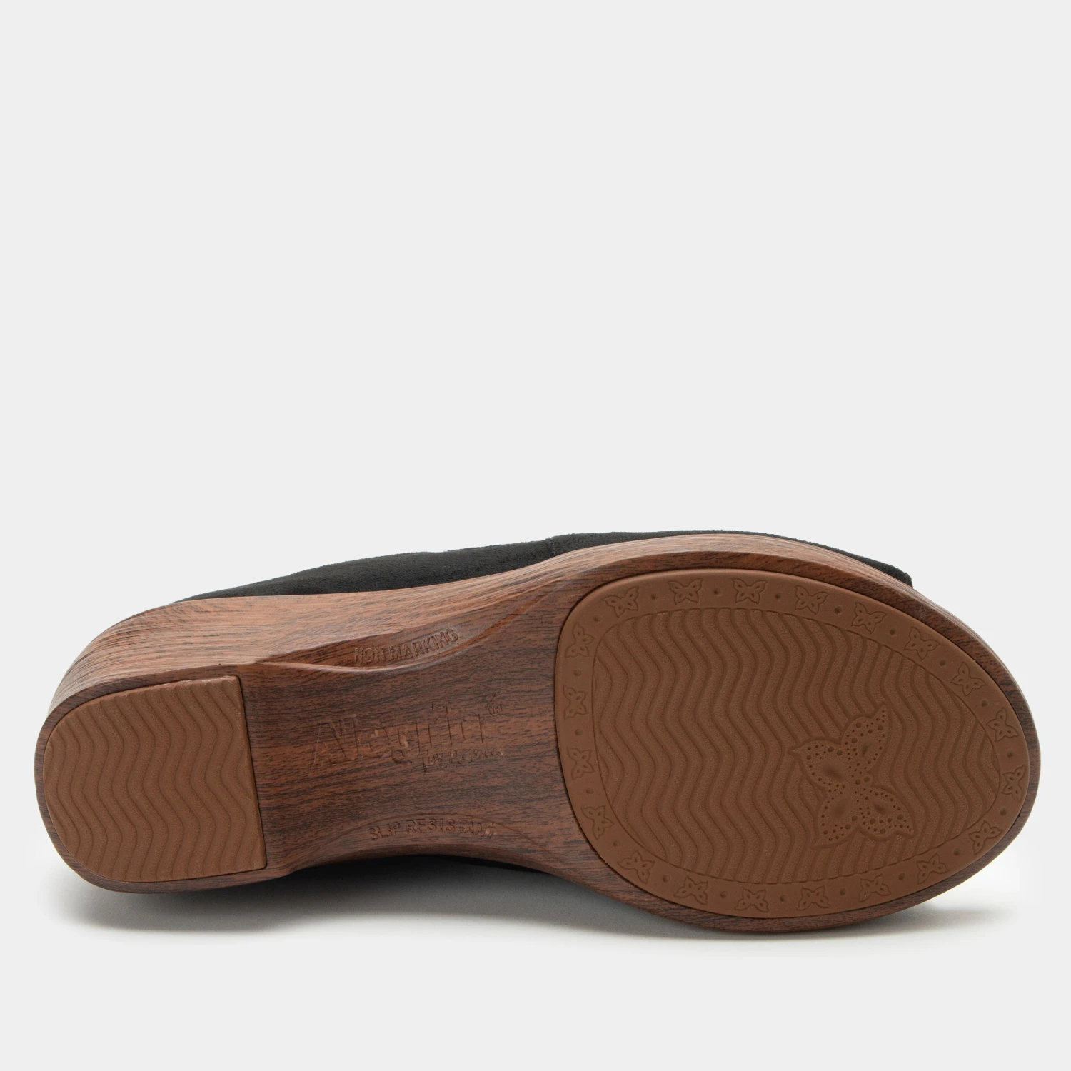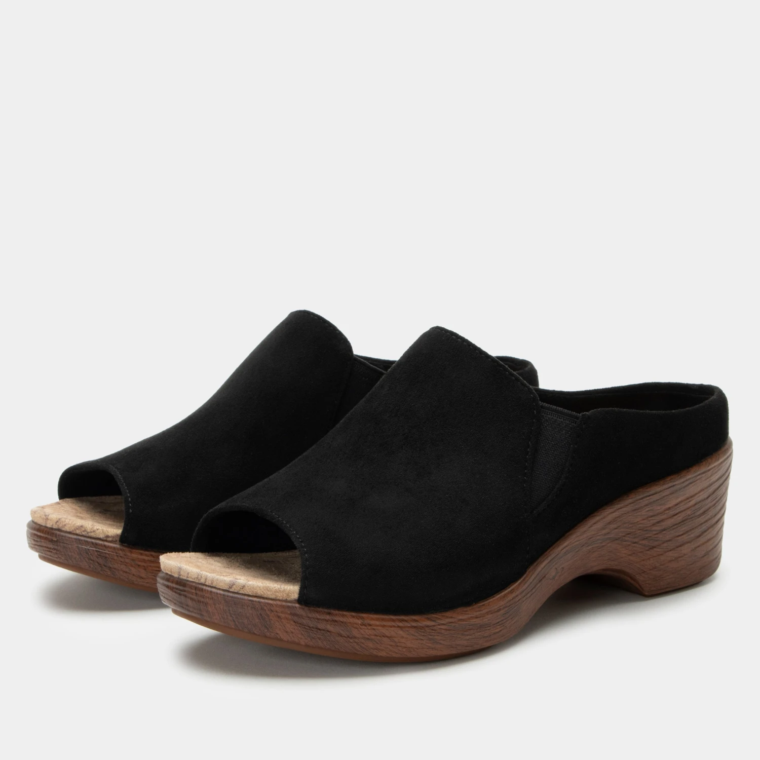 Think you know clogs, think again. This contemporary open-toe style is detailed in a micro suede stretch upper that gently hugs the foot. For added security on the go, there’s a subtle heel rim that holds the foot in place and stretchy side gore. Hidden inside is a contoured memory foam and cork footbed set into a featherweight wood look wedge outsole.