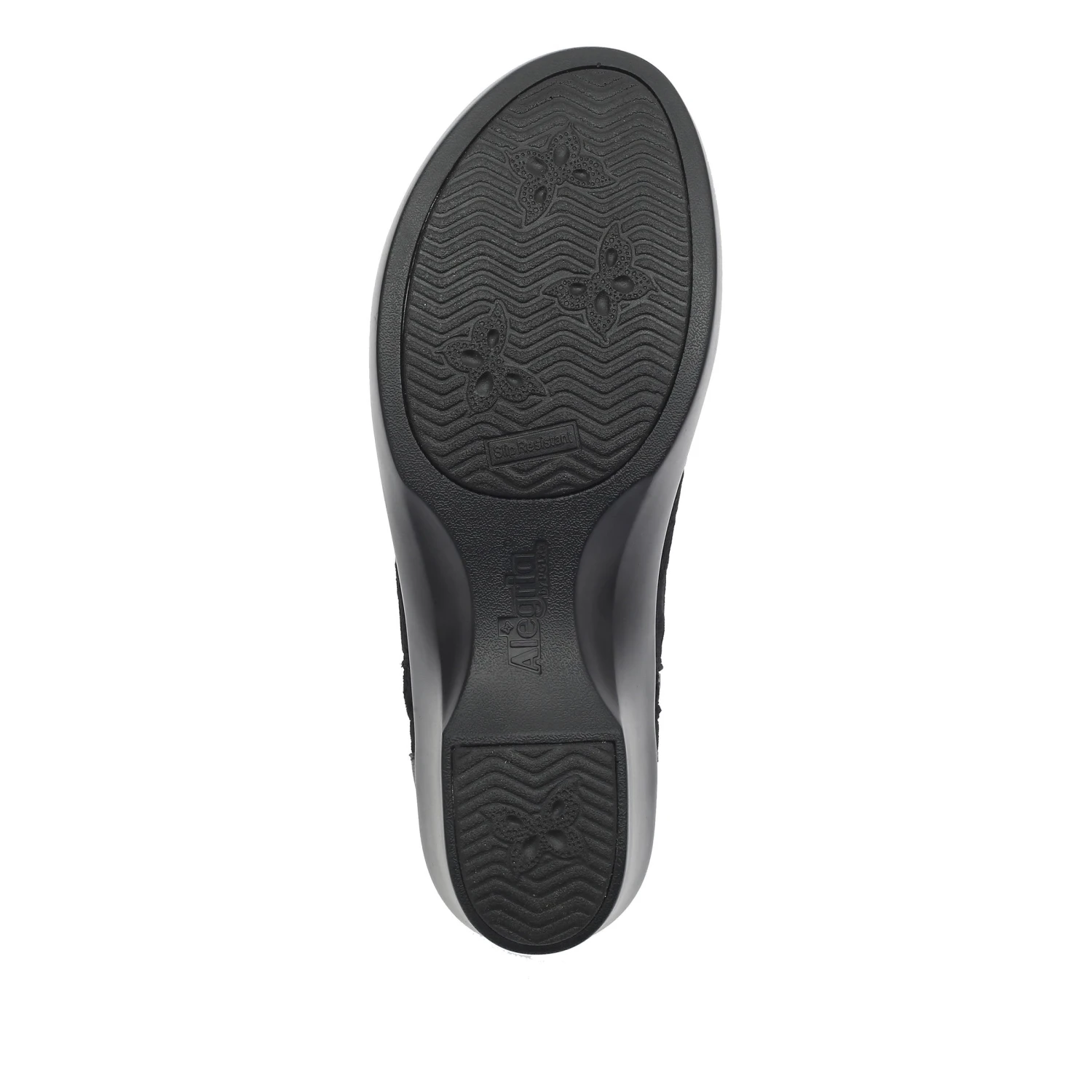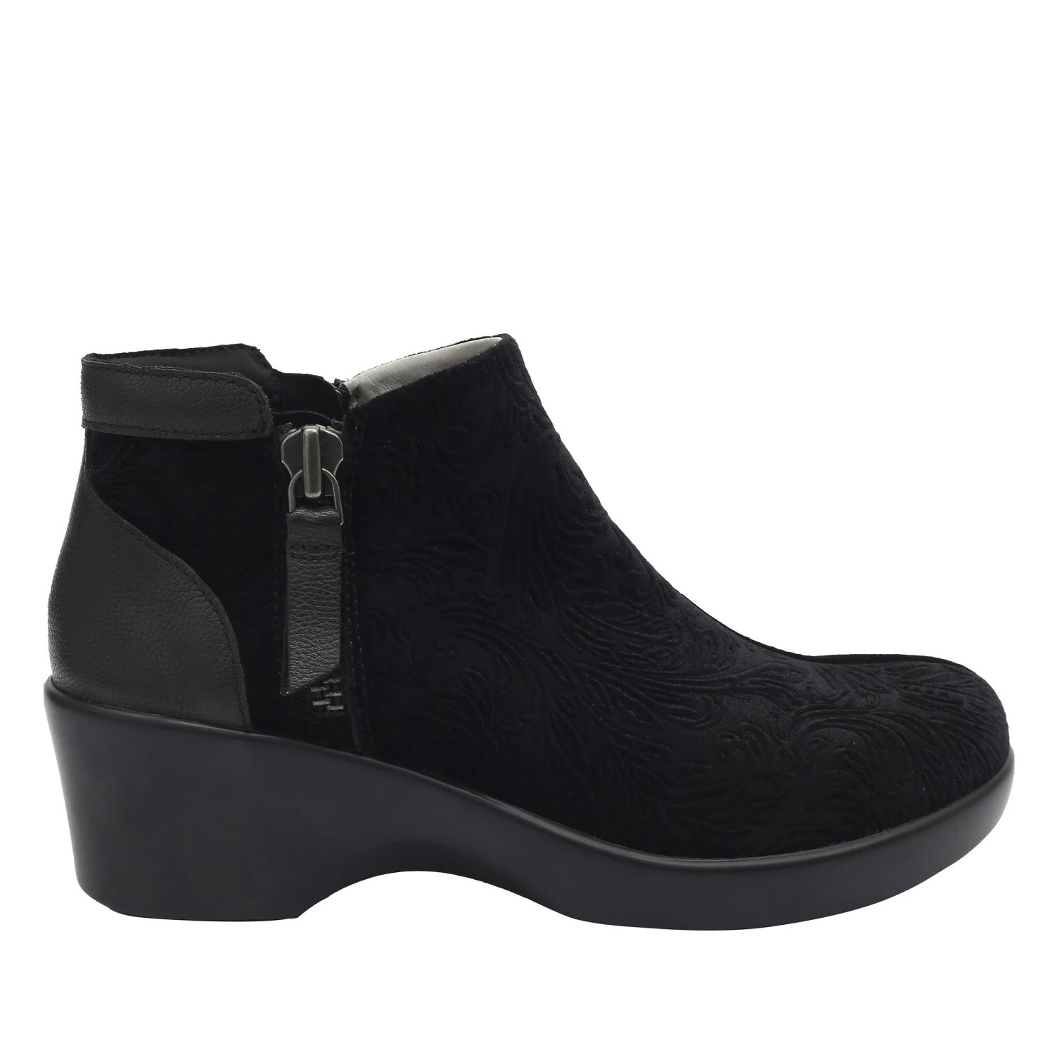 Featured in embossed stretch Raven Velvet upper for the ultimate luxe look and feel.