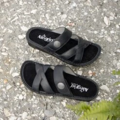 A crisscross slide with adjustable hook-and-loop leather instep strap takes a whimsical turn, trimmed with a novelty metal ornament. Underneath support and comfort is provided by a removable memory foam and cork footbed and mini outsole.